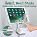 Η ασφάλεια της συσκευής σας είναι η προτεραιότητά μας. Η βάση tablet και τηλεφώνου μας τονίζεται με ένα μαξιλαράκι που καλύπτεται από σιλικόνη, ένα γάντζο από καουτσούκ και μια στιβαρή μεταλλική βάση αντίβαρου που μαζί εξασφαλίζουν εξαιρετική σταθερότητα. Η βάση διασφαλίζει ότι οι συσκευές σας παραμένουν σταθερά στη θέση τους και προστατεύονται από ολίσθηση και γρατσουνιές. Η στιβαρή κατασκευή που αποτελείται από πόλους PC+ABS υψηλής ποιότητας μπορεί να μεταφέρει με σιγουριά το βάρος του κινητού τηλεφώνου και του tablet σας, καθιστώντας το μια βάση στην οποία μπορείτε να βασιστείτε. Τα λαστιχένια πόδια κάτω από τη βάση ενισχύουν περαιτέρω τη σταθερότητα της βάσης όταν χτυπάτε τις συσκευές σας.